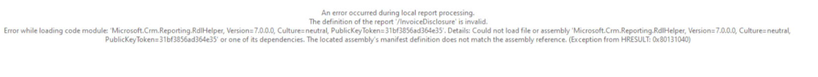 In our case it was located here: C:WindowsMicrosoft.NETassemblyGAC_MSILMicrosoft.Crm.Reporting.RdlHelperv4.0_9.0.0.0__31bf3856ad364e35