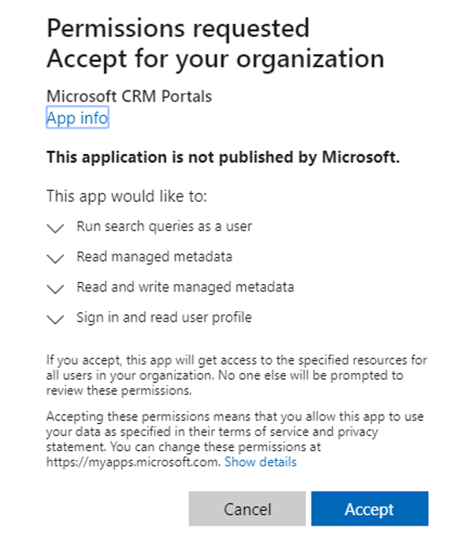 Step 7: It will add the required SharePoint permissions, respectively. Also, you will be redirected to the Azure AD application to provide your consent for the changes.