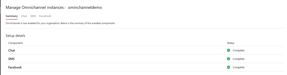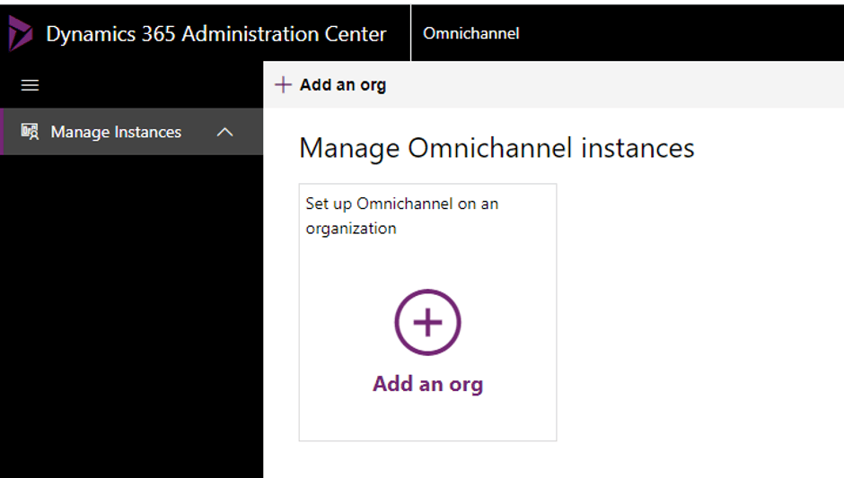 Note: As an admin, you can configure Omnichannel on multiple environments (instances). You can view all organization instances where the Omnichannel app has been configured in the Manage Instances view.